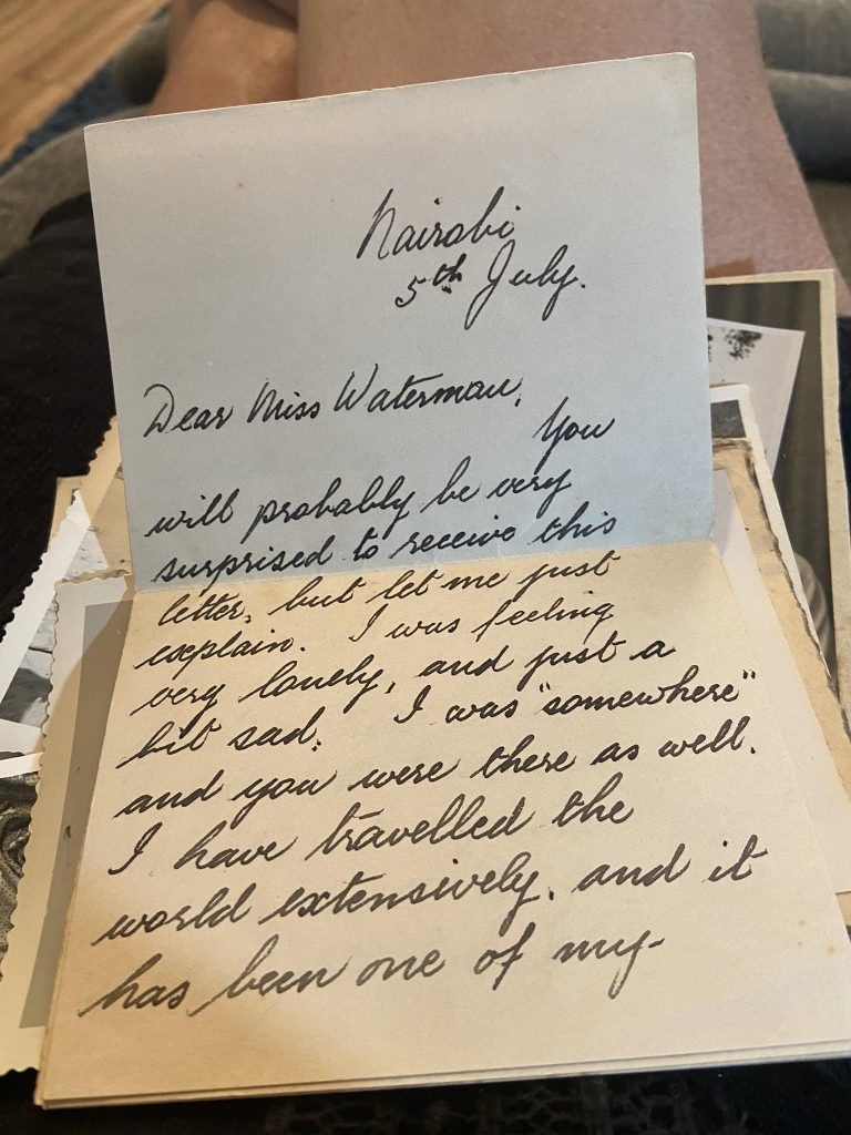 Nevertheless it is a lovely letter and it is a beautiful memory to keep. It wasn’t written by my grandfather, he didn’t travel the world and hadn’t been anywhere else before his arrival in Kenya at some point in the 1930’s.